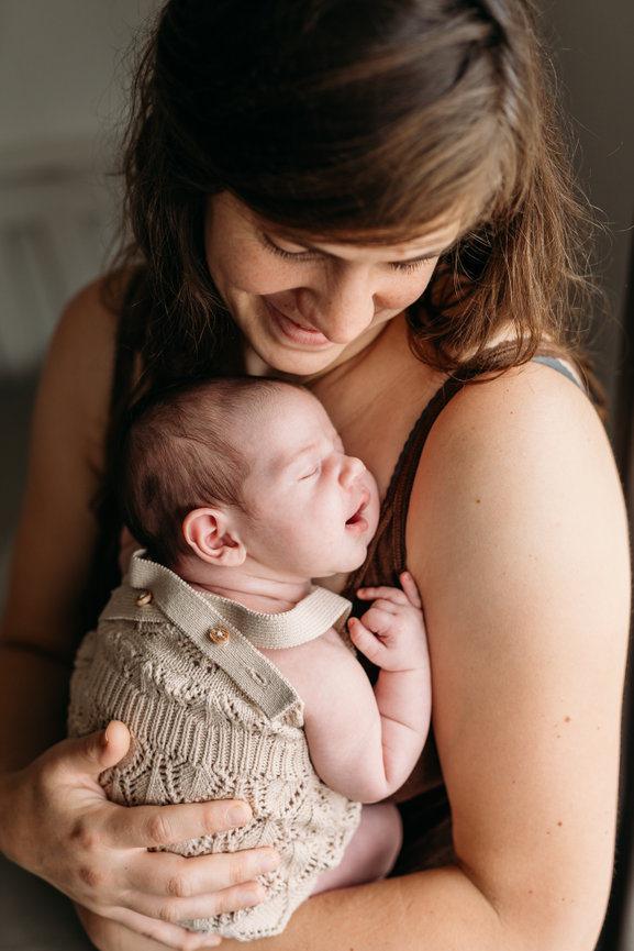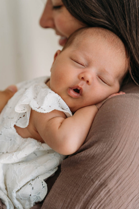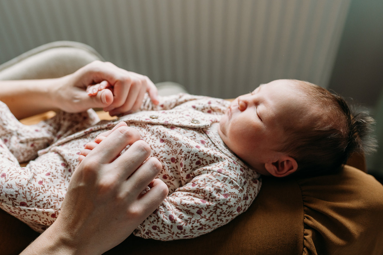 Mijn newbornshoots zijn lifestyle shoots. Dit houdt in dat jullie connectie voorop staat en dat we ons laten leiden door de baby. Deze sessie duurt daarom ook wat langer dan een gezinsshoot, zodat we ruim de tijd hebben voor een voeding, verschoning of badje, of gewoon om even te wennen aan een camera op zo'n kwetsbaar moment. Ik neem heel ruim de tijd voor jullie, ook als jullie baby even krampjes heeft of een extra voeding wil. Dan wachten we gewoon.